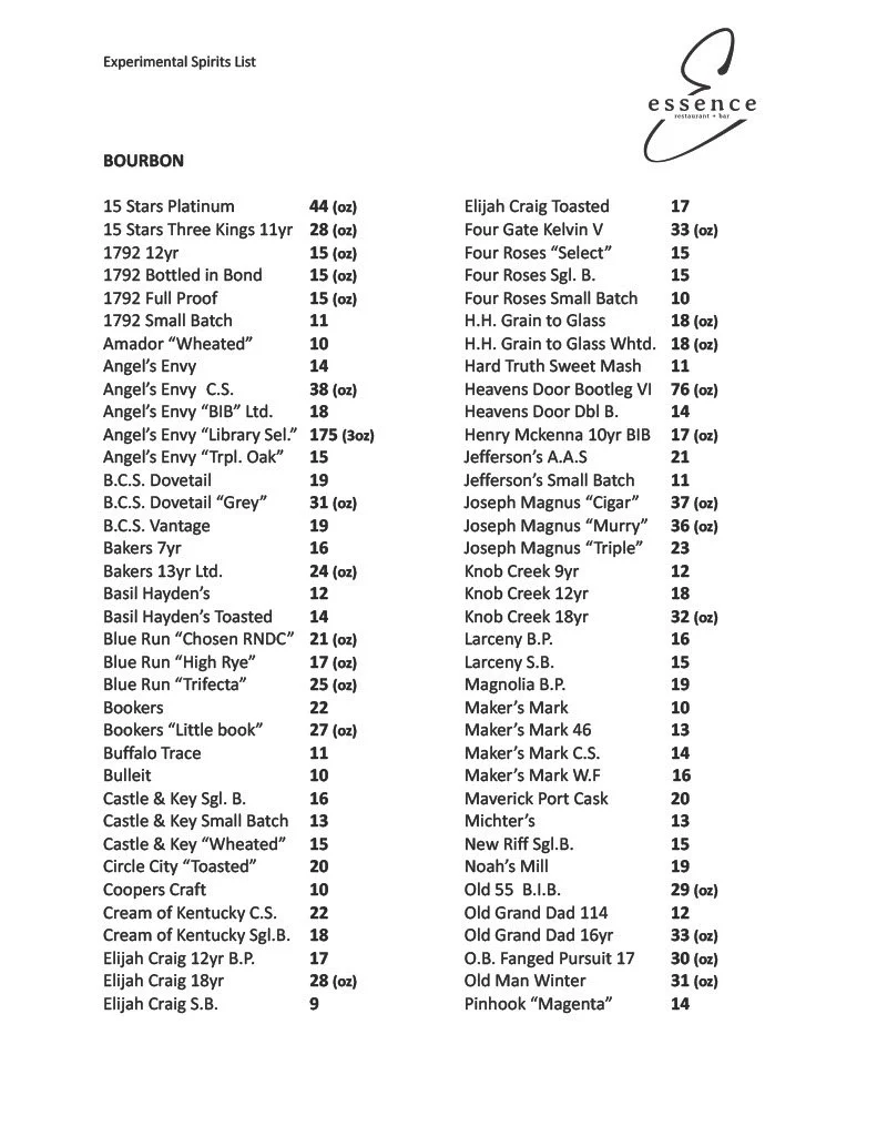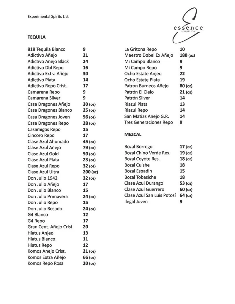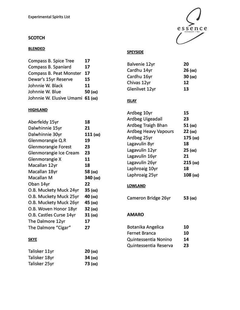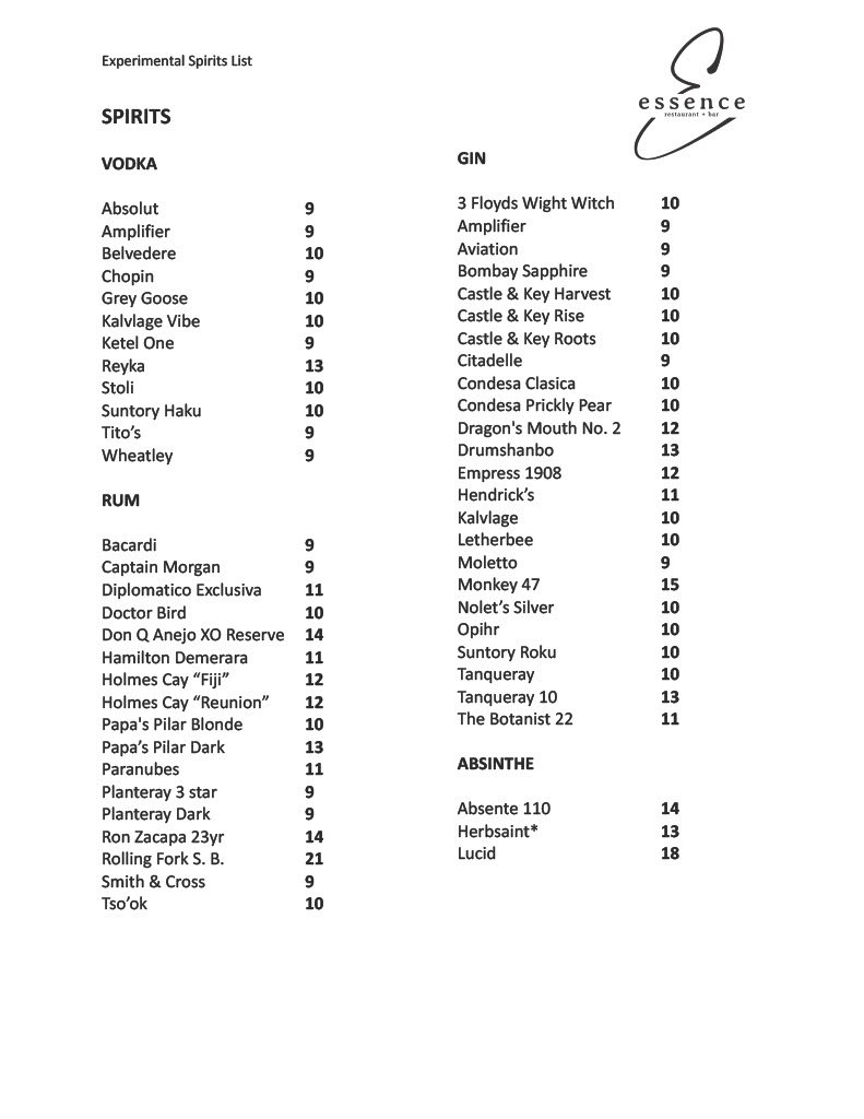 Spirits Menu